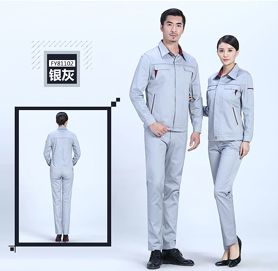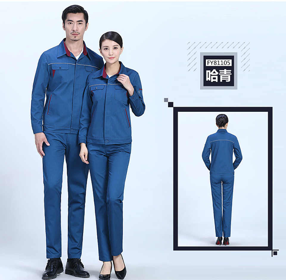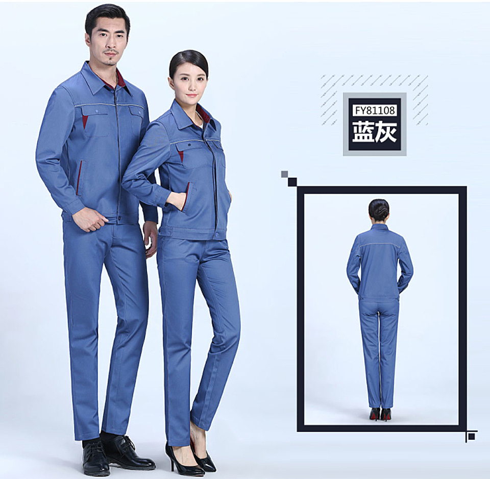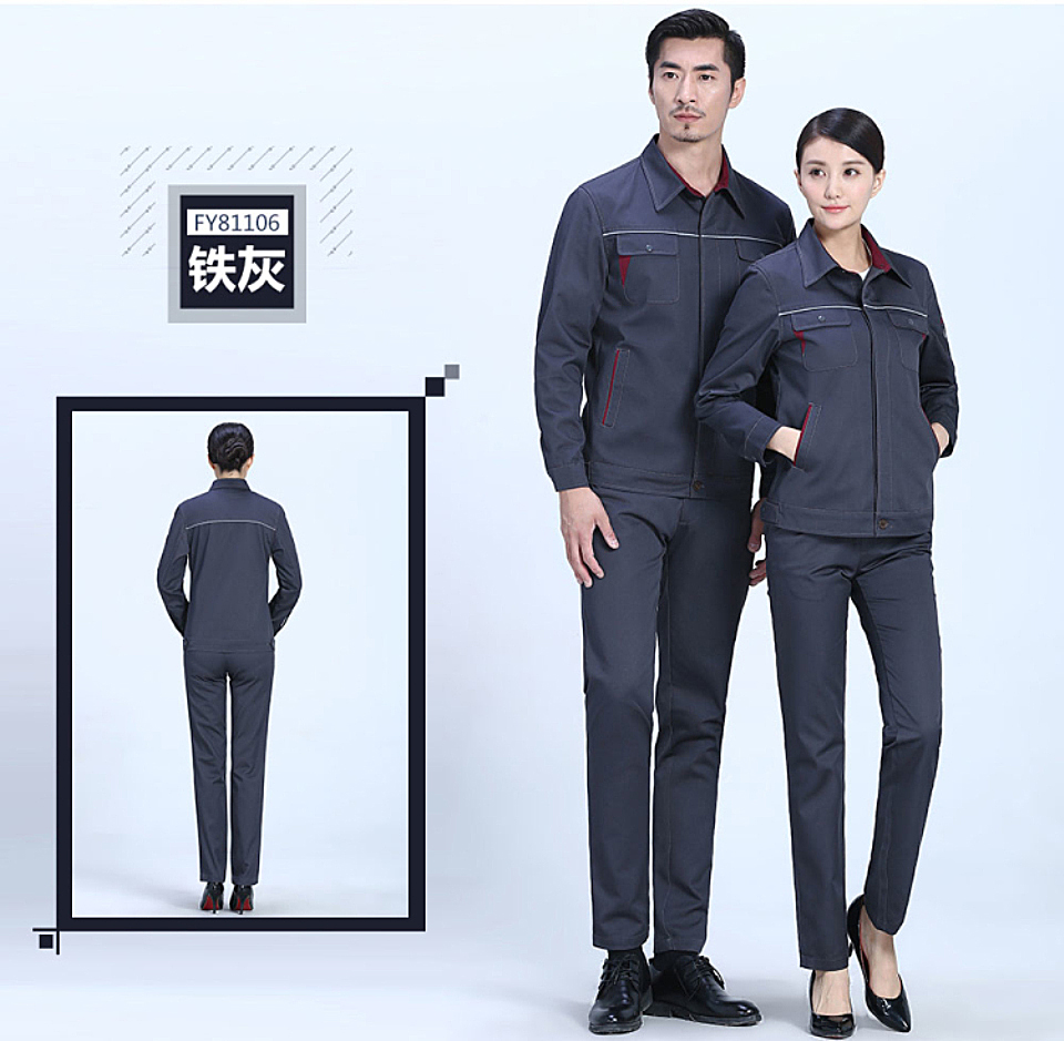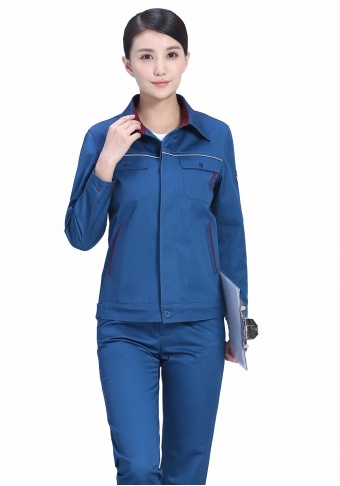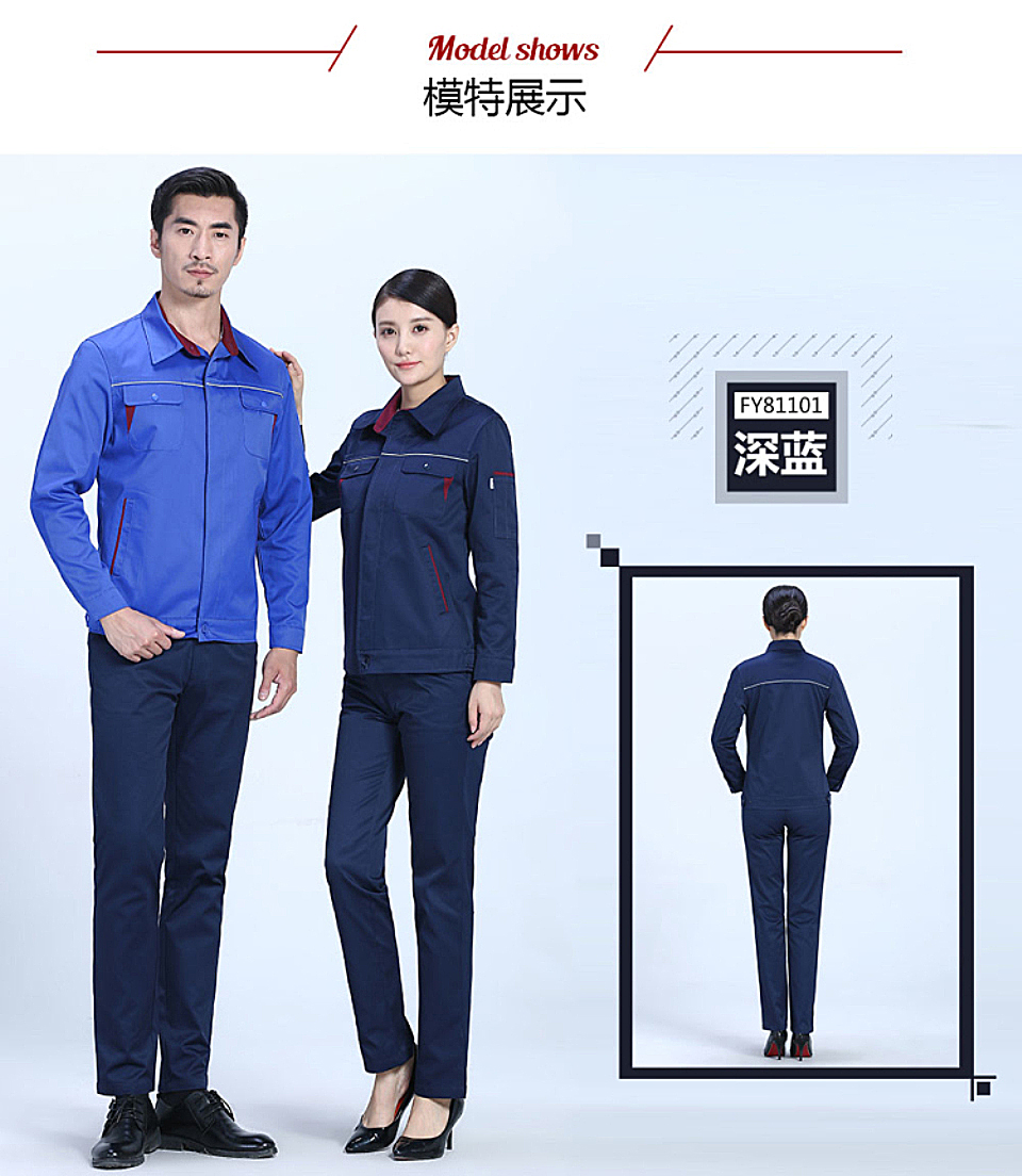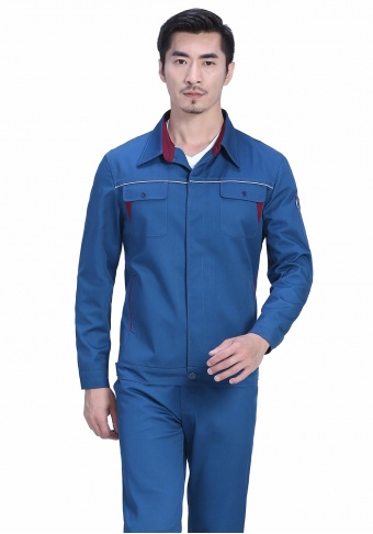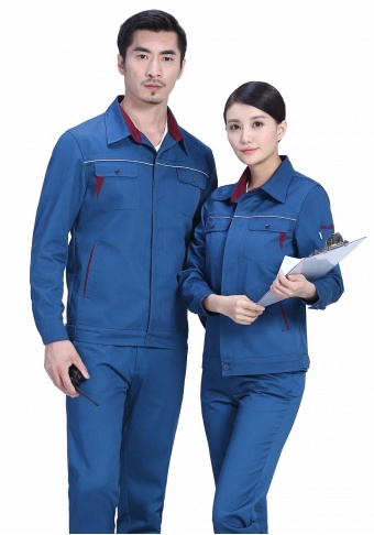 时尚配色春秋涤棉纱卡长袖工作服