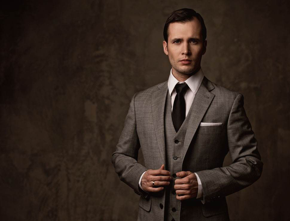 在高级西服定制里,马甲的宽容度非常大,不管你是想要文艺范儿,型男范儿,还是艺术家范儿、精英范儿,都能通过一件合适的马甲搭配出你想要的感觉。马夹因其独特的剪裁,不仅解放了手臂,也有很好的保暖作用,选择马夹的时候,其肩宽、胸部的松紧度以及下摆的长度在选择时都应注意,版型合身的马夹与高级西服定制中西装搭配,不仅有修身的效果,还能遮掉小肚腩。